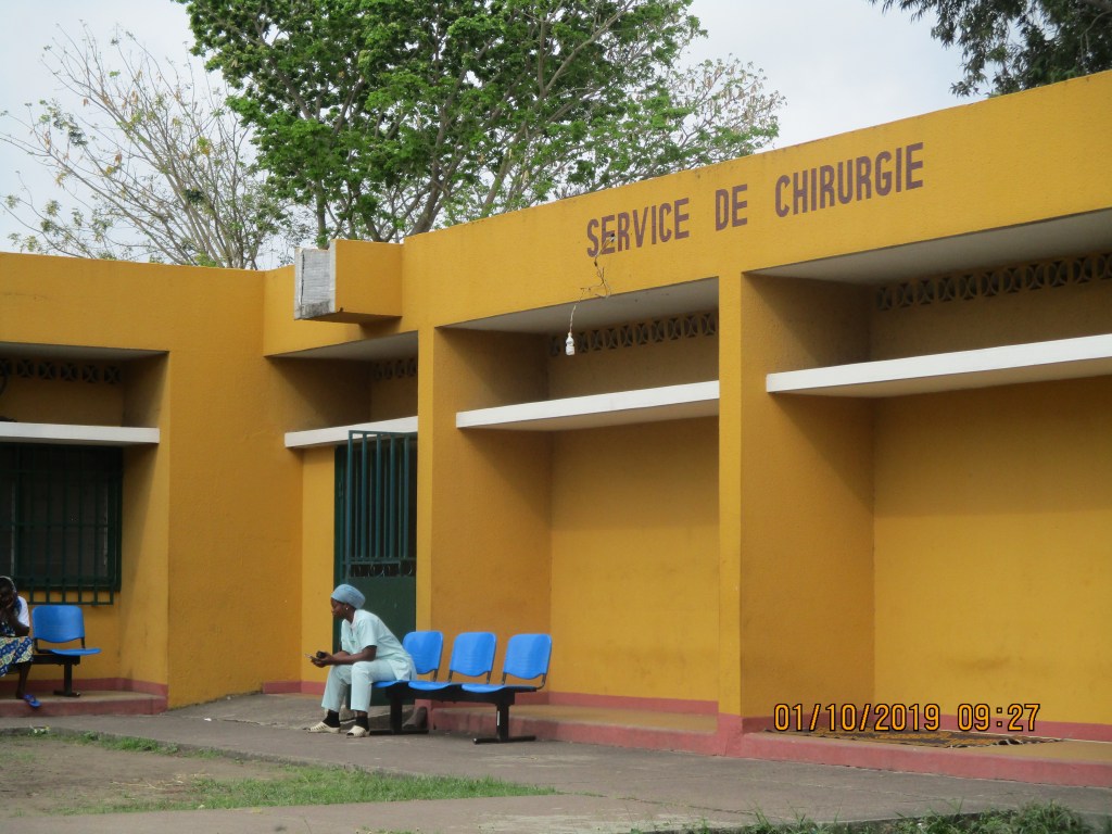 7h50, nous voici devant l’hôpital. c’est encore très calme. Le reste de l’équipe n’est pas encore arrivé. Je demande à la personne au guichet d’accueil si le surveillant général est arrivé
